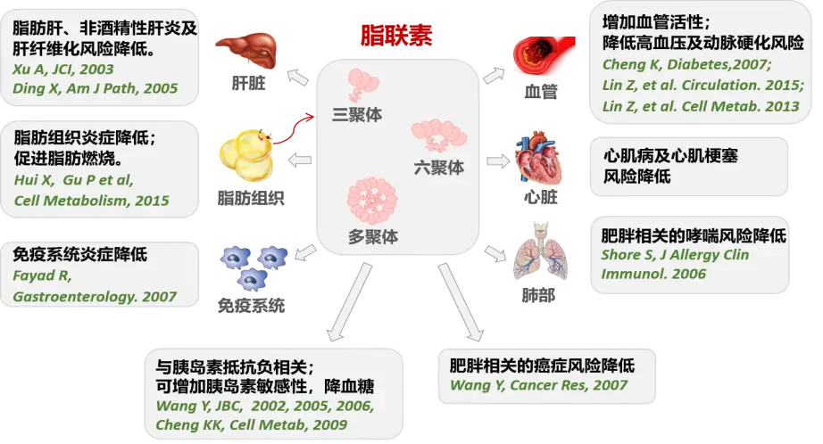 脂聯(lián)素(ADP)是由脂肪細(xì)胞分泌的、對(duì)人體有保護(hù)作用的特異性脂肪因子,是一種具有調(diào)節(jié)糖脂代謝、抗炎癥反應(yīng)、抗動(dòng)脈粥樣硬化等多重效應(yīng)的脂肪細(xì)胞因子。